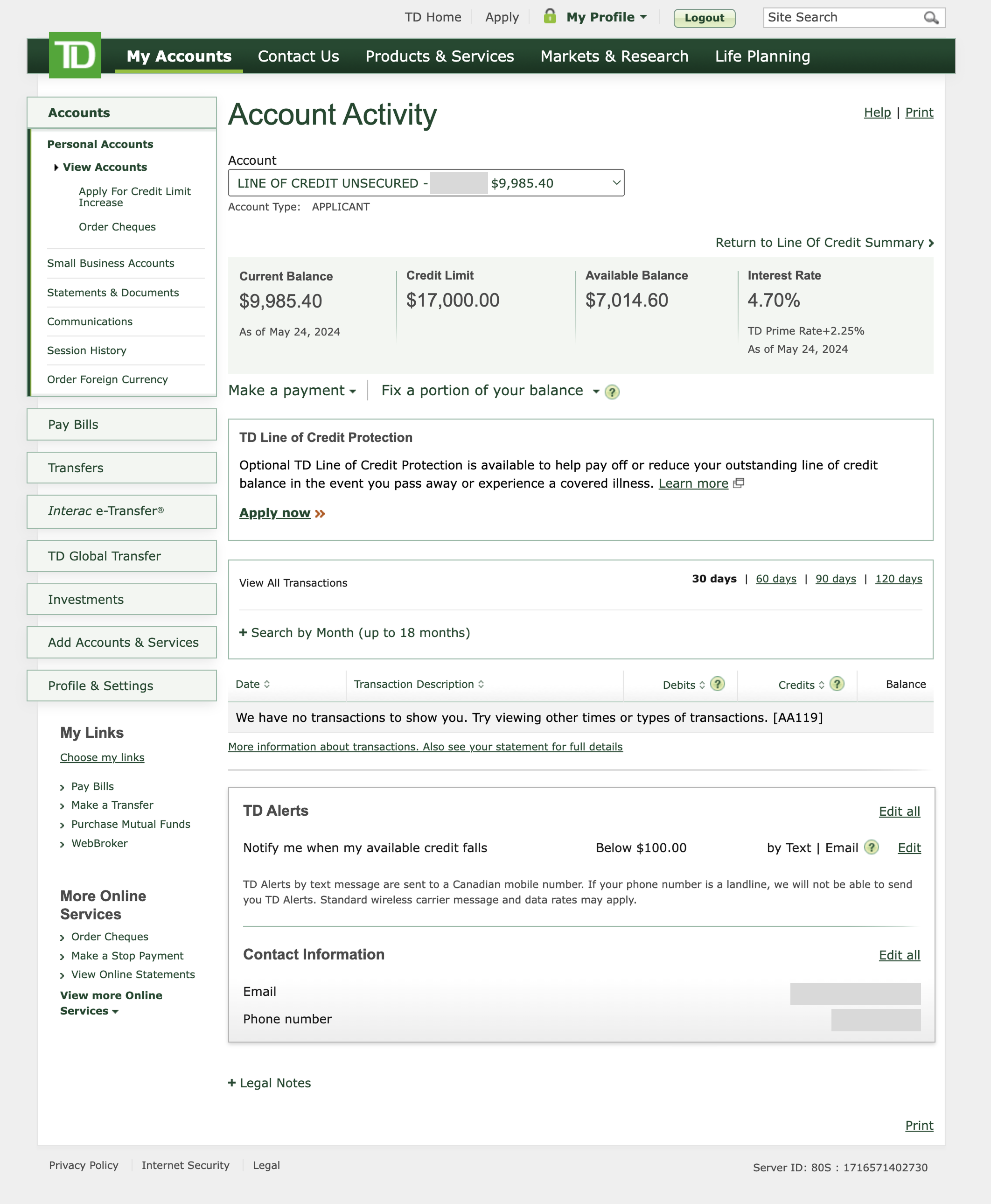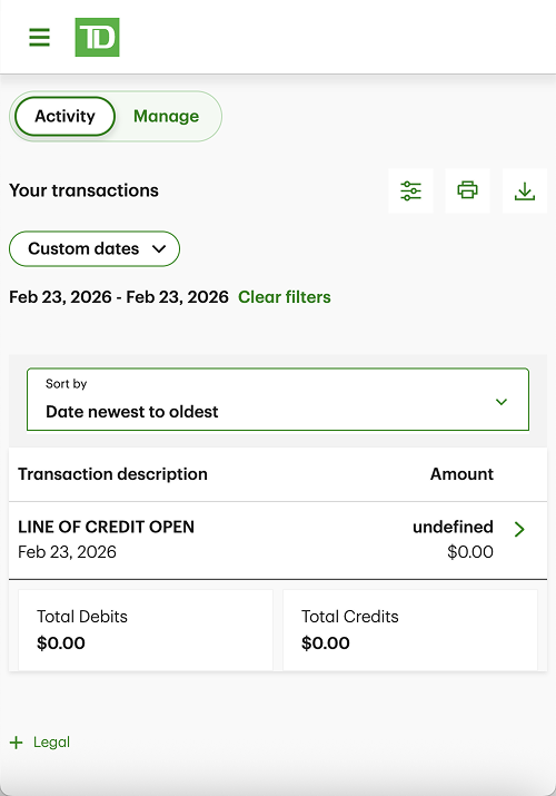 Since the redesigned pages live behind TD's login, the screenshots below offer a glimpse of the modernized ULOC.
